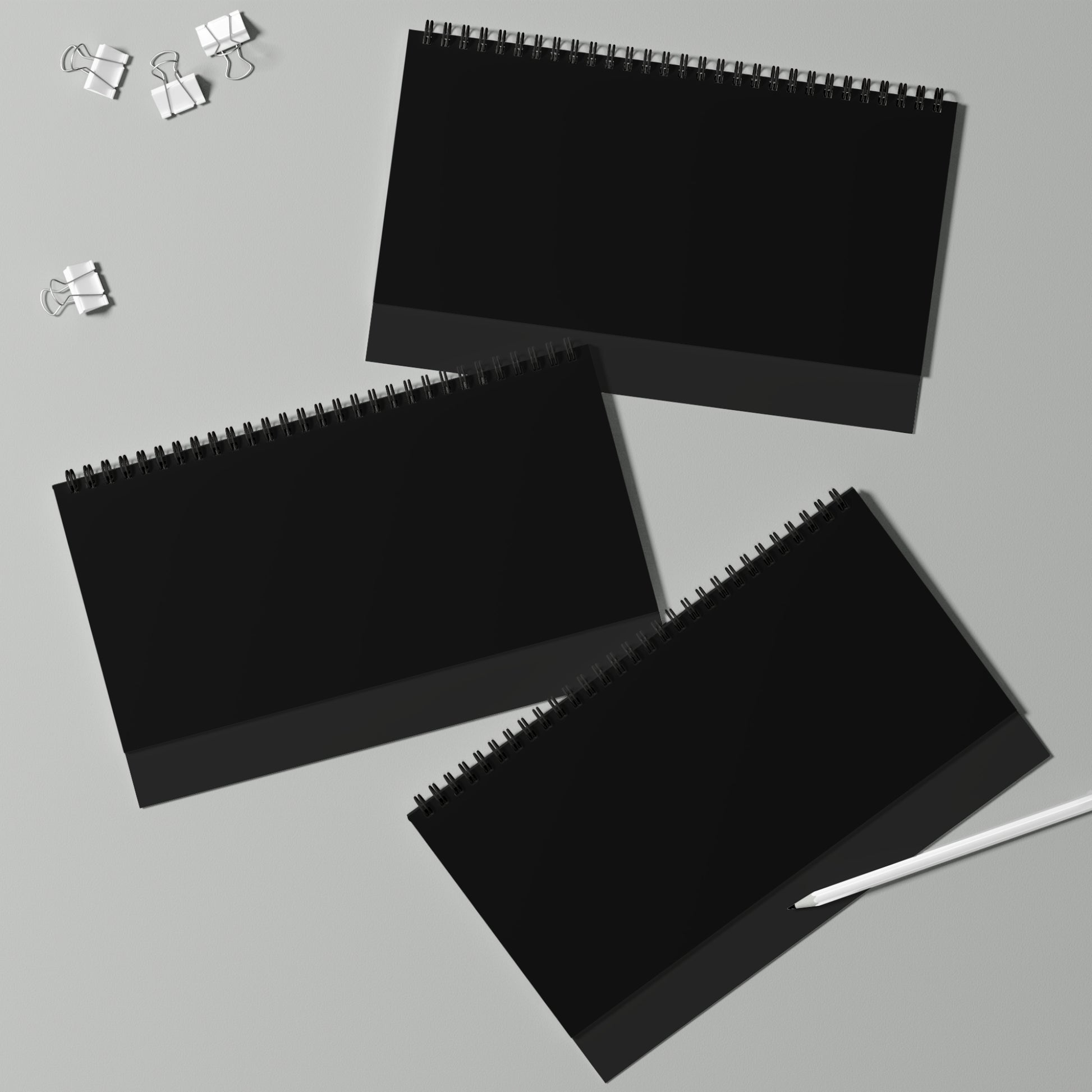 .: Black spiral binding and tent card backing